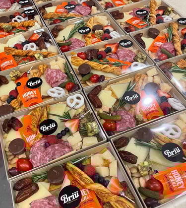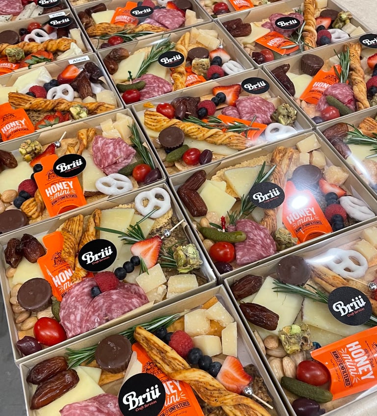 We offer individually packaged charcuterie board options... We also offer vegan alternatives.